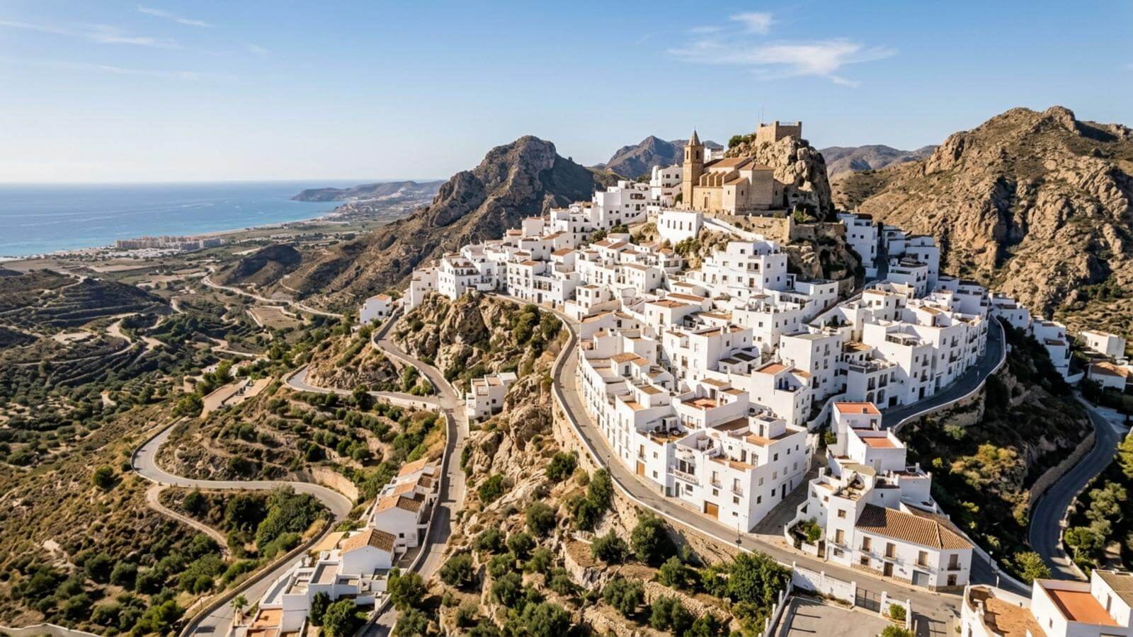 una buena idea para conocer la zona con tranquilidad y aprovechar el día. Mojácar tiene ese aire de lugar blanco en alto, con calles estrechas, miradores y vistas abiertas, pero también una franja de playa larga para pasar horas sin darle muchas vueltas. Lo bueno es que aquí no todo se concentra en lo mismo: puedes dedicar una mañana al casco antiguo y luego bajar a la parte de playa más animada. O salir a ver calas y pueblos cercanos. En la costa de Almería, eso cunde bastante.