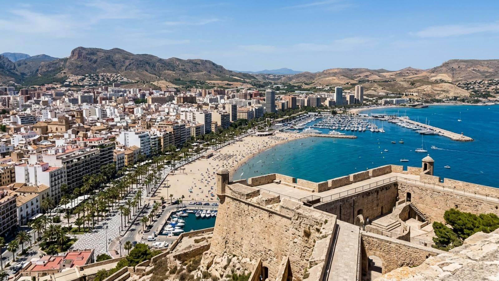 Lo más conocido es el castillo de Santa Bárbara, por las vistas y por la forma en que domina todo el paseo marítimo. Merece la pena pasear también por el casco antiguo, acercarte a la concatedral de San Nicolás y bajar después hacia la Explanada. Si te apetece un rato junto al agua, la playa del Postiguet queda bastante cerca del centro.
