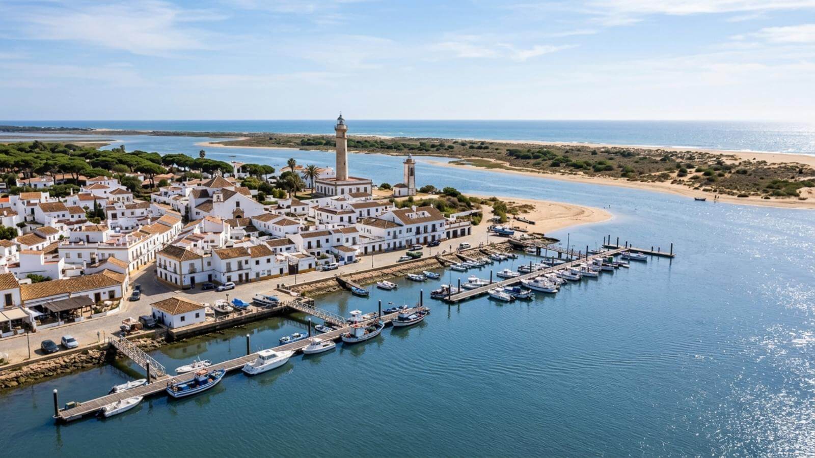 Lo más conocido es el entorno de la Flecha de El Rompido, una lengua de arena frente al núcleo principal que forma parte de un espacio protegido. También merece la pena recorrer el puerto, la ribera y las calles del casco antiguo. Si te apetece ver más, en los alrededores hay pueblos marineros y tramos de costa muy distintos entre sí.