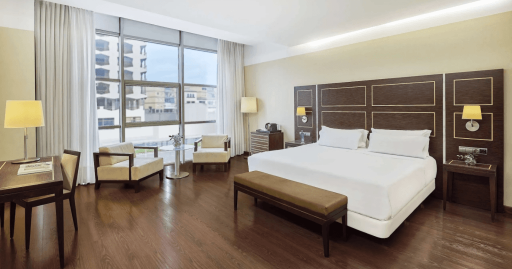 Para una escapada urbana con comodidad y 5 estrellas, el NH Gran Hotel Casino Extremadura en Badajoz es una apuesta segura. En enero, chollazo en solo alojamiento desde 45€ por persona y noche. Perfecto para 2 personas que quieran dormir bien, caminar y despertarse con vistas al Guadiana.