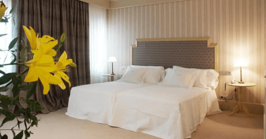 El precio es una ganga: 92,50€ por persona y noche, en ocupación doble. Entre el restaurante del hotel, el salón con piano y los masajes, tienes todo para terminar el año con buen sabor. Algunas habitaciones incluyen balcones con vistas a la calle Estafeta, perfectas para fans de San Fermín.