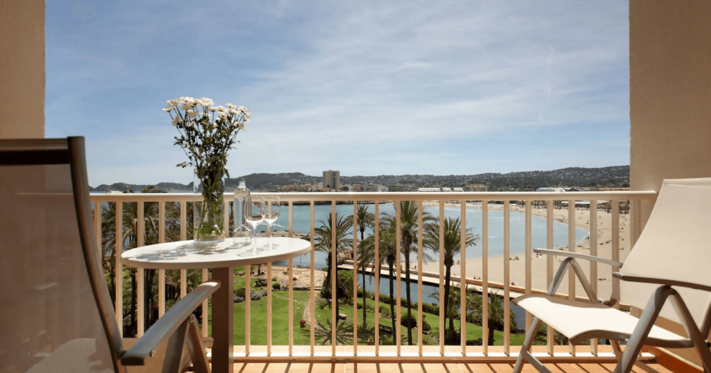 Aquí vas a tener un lugar para estar bien desde el día uno. Los espacios comunes son amplios y luminosos, con ese estilo mediterráneo que te invita a quedarte un rato más leyendo o charlando tras la playa. Las habitaciones con vista al mar marcan la diferencia: abrir la ventana, sentir la brisa y contemplar la bahía no tiene precio para una escapada de fin de semana.