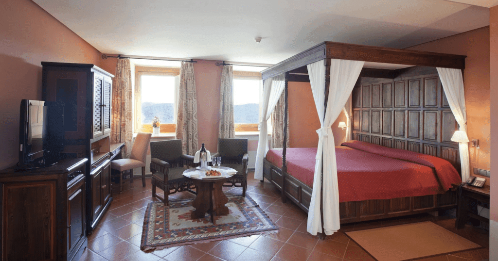 La experiencia mezcla patrimonio, gastronomía y panorámicas de la Cataluña interior. El antiguo refectorio es hoy restaurante, ideal para culminar la estancia con una cena. Entre fosos, torres y aposentos de inspiración medieval catalana, el descanso está asegurado. La leyenda del lugar se respira en sus corredores y en la torre Minyona.