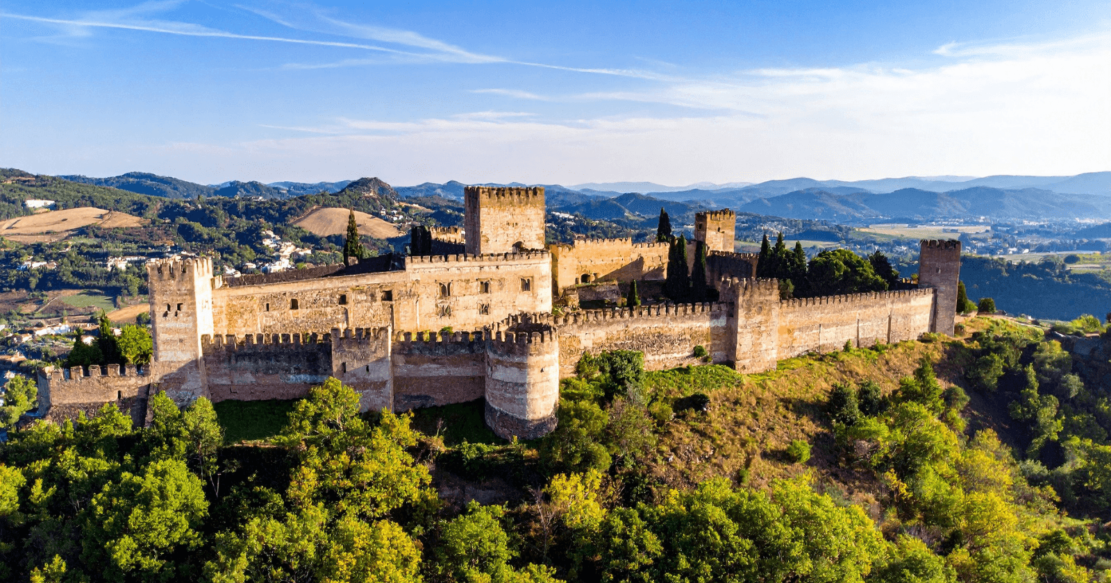 - Fosos, torres y murallas con inspiración medieval catalana.