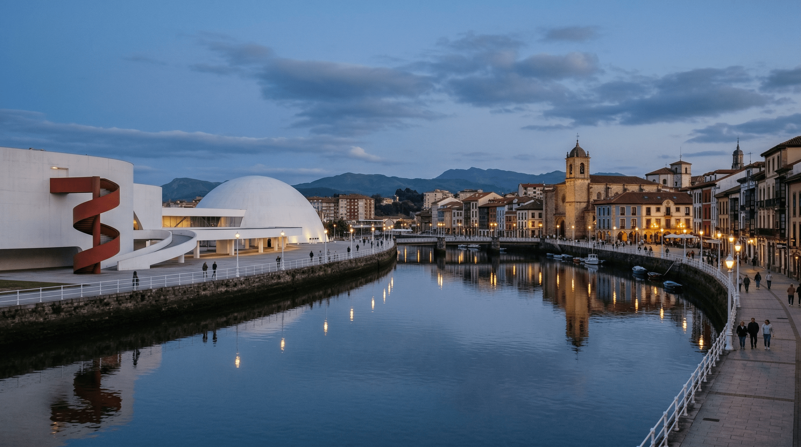 Date una vuelta por el casco histórico, con sus calles porticadas y plazas, y acércate al Centro Niemeyer para ver su arquitectura y la ría. Si te gusta mirar escaparates y edificios antiguos, aquí hay bastante sin necesidad de hacer grandes trayectos.