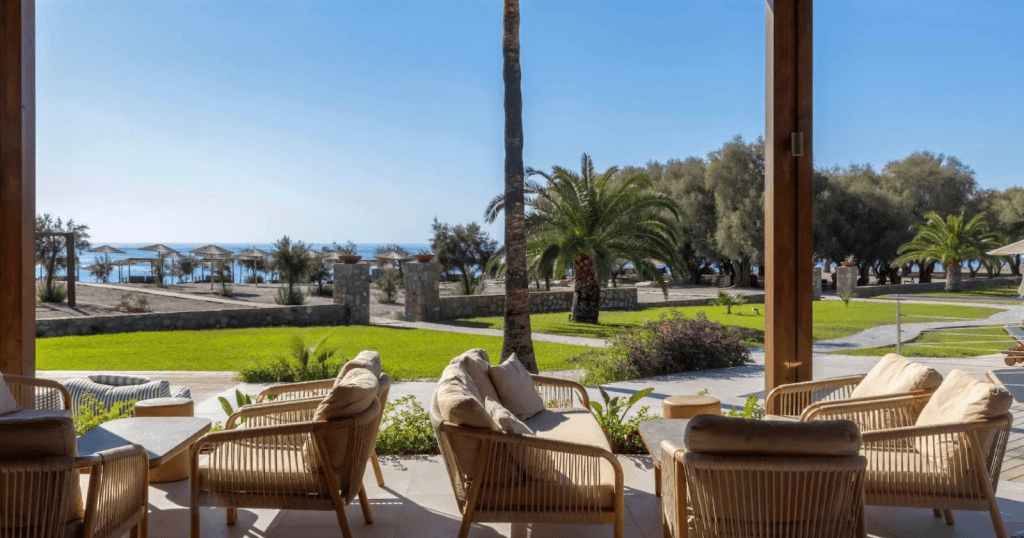 - 🌊 Balcón privado con vistas al mar Egeo.