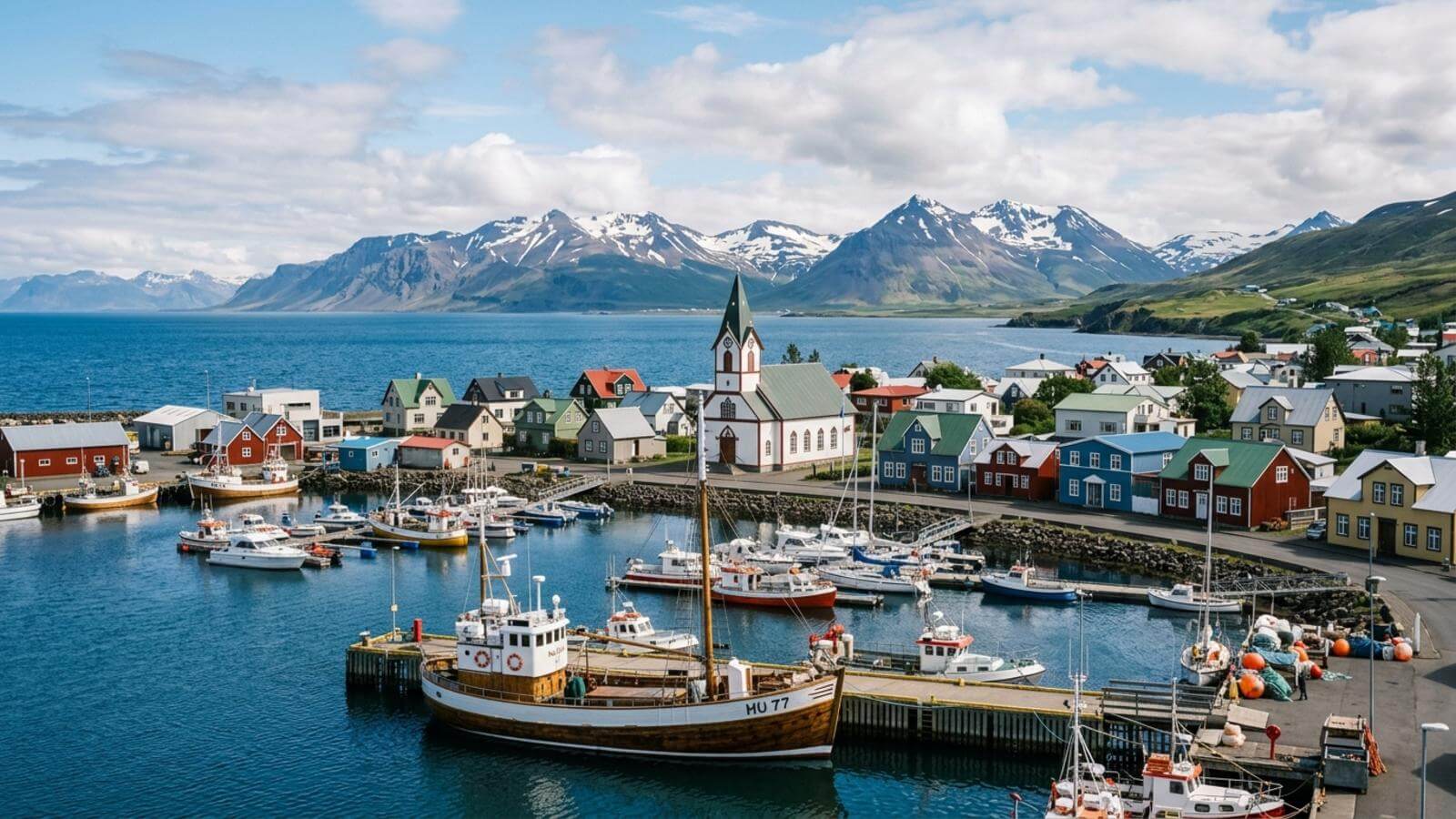 Húsavík es una parada clara por su puerto y su aire marinero. También merece la pena acercarse al área del lago Mývatn, donde cambian mucho los paisajes en pocos kilómetros. Si el tiempo acompaña, la cascada Dettifoss y algunos miradores del litoral dejan imágenes potentes. En esta parte del país hay mucho espacio abierto y lugares naturales muy variados.