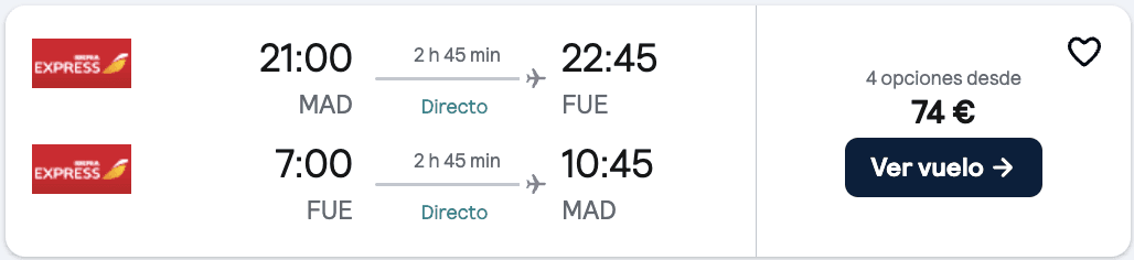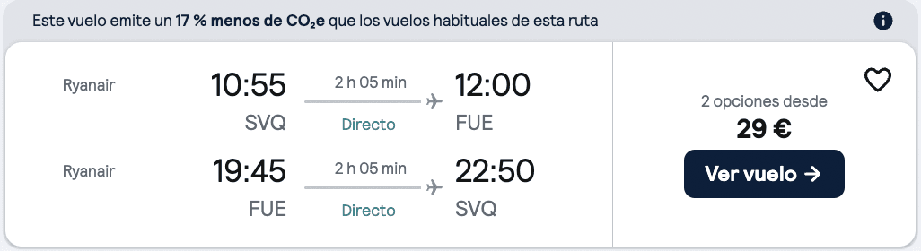 • Vuelo Sevilla–Fuerteventura desde 152€ ida y vuelta.
