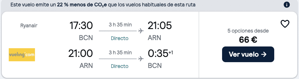 Posteriormente, en Skyscanner, puedes comprobar los detalles del vuelo: