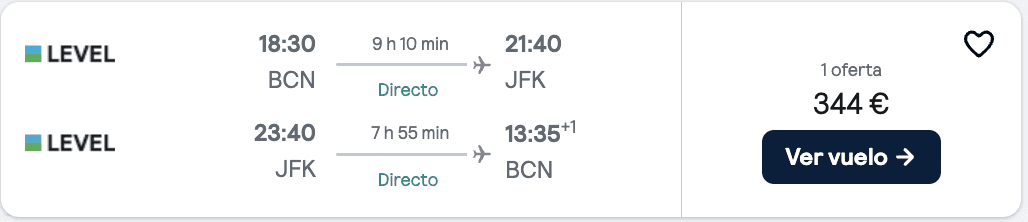 En resumen: puedes volar a Nueva York sin escalas, en una época ideal y por un precio que rara vez se ve, saliendo cómodamente desde Barcelona. Estas ofertas no suelen durar mucho y las plazas se agotan rápido.