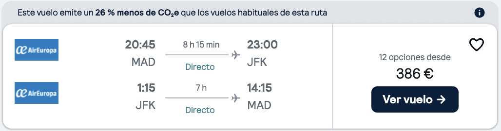 ✈️ Vuelo directo hasta el aeropuerto JFK de Nueva York