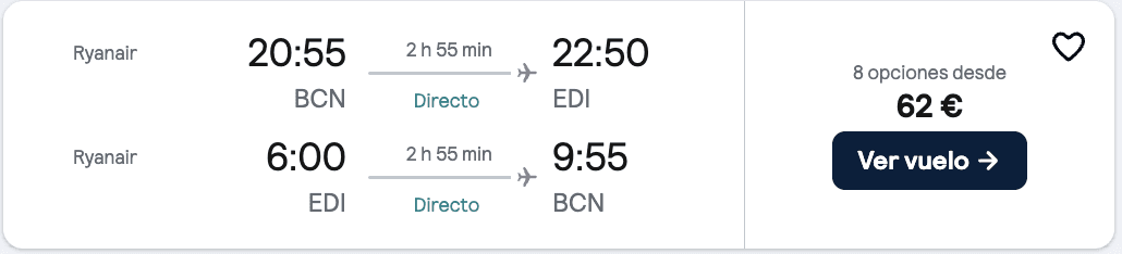 Es el momento de tachar Edimburgo de la lista sin gastar de más. Bloquea fechas, prepara una mochila con ropa térmica y deja que la ciudad haga el resto. Los mejores horarios vuelan cuando el precio es tan bajo, así que conviene decidirse pronto y asegurar asiento.
