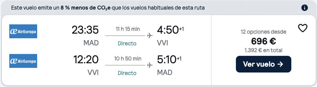 • Vuelos Madrid–Santa Cruz por 696€ ida y vuelta en junio