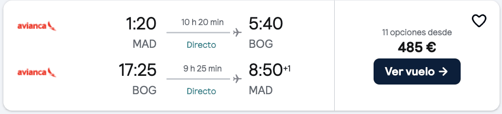 - ✈️ Madrid–Bogotá por 485€ i/v: muy por debajo del precio habitual para cruzar el Atlántico.